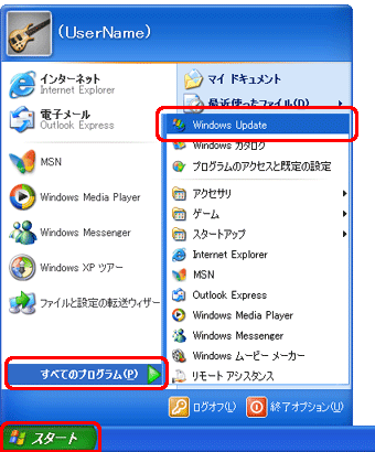 [スタート]をクリックし、「すべてのプログラム」−「Windows Update」の順にクリックします。