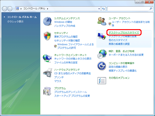 「デスクトップのカスタマイズ」をクリックします。