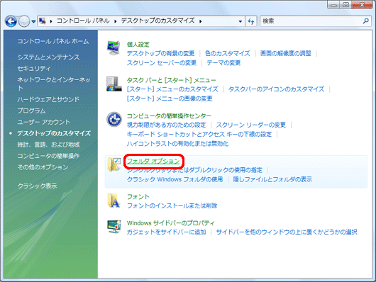 「フォルダ オプション」画面が表示されます。