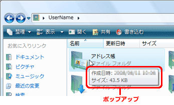 ファイルやフォルダのポップアップを消したい(Windows Vista)
