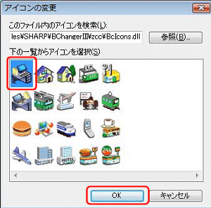 一覧から使用するアイコンをクリックし、[OK]をクリックします。