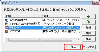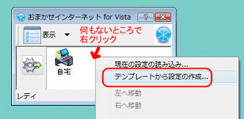 おまかせインターネット for Vista には、ネットワーク設定やホットスポットなどのネットワークサービスの設定が、あらかじめテンプレートとして用意されています。このテンプレートを利用してアイコンや名称を設定し、ネットワーク設定を登録することもできます。
