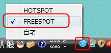 たとえば、外出先の「FREESPOT」に接続するときは、「FREESPOT」アイコンをクリックします。