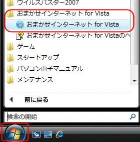 [スタート]をクリックし、「すべてのプログラム」−「おまかせインターネット for Vista」−「おまかせインターネット for Vista」の順にクリックします。