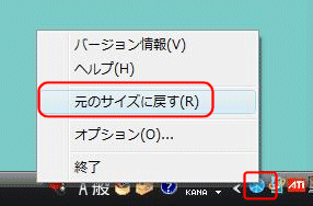 初めて起動したときには、メイン画面は表示されません。メイン画面を表示するには、通知領域の「おまかせインターネット for Vista」アイコンを右クリックし、「元のサイズに戻す」をクリックしてください。
