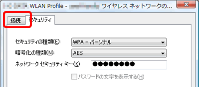 「ワイヤレスネットワークのプロパティ」画面が表示されます。