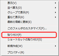 - フォルダ内の何もないところで右クリックし、「貼り付け」をクリックします。