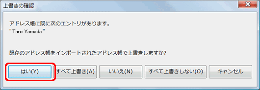 アドレス帳にすでに同じ名前のファイルがある場合には、「上書きの確認」画面が表示されます。