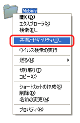 プライベートに設定されたフォルダを右クリックし、「共有とセキュリティ」をクリックします。
