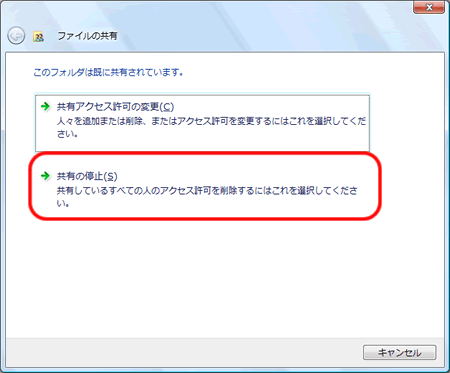フォルダの共有を解除するには、共有フォルダを設定したユーザーまたは管理者のアカウントで行なってください。