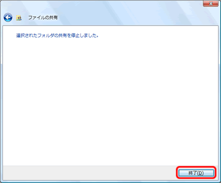 「選択されたフォルダの共有を停止しました。」と表示されます。
