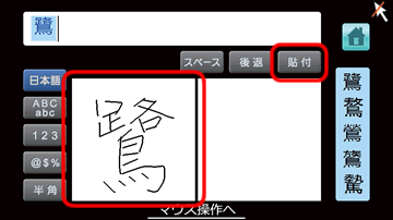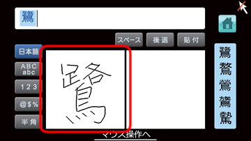 第一候補以外の文字が正しいときは、右側の候補一覧の中から正しい文字をタッチします。
