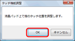 液晶パッド上のタッチした位置と画面の反応位置がずれている場合は、タッチ機能の調整をします。