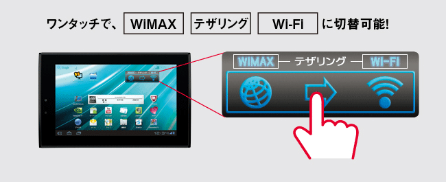 ※ Wi-Fiテザリング使用中は、WiMAXとWi-Fiを同時に使用した状態になりますので、バッテリーの消費が早くなります。Wi-Fiテザリングを利用しない場合は、テザリングを終了してください。