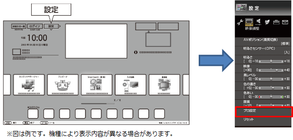 映像によって画面の一部分がチラついたり、ブレたりするときは、映像調整の「プロ設定」の設定を変更することで改善する場合があります。