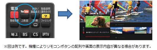 本機リモコンの「YouTube」ボタンを押すことで、かんたんに「YouTube」を視聴することができます。