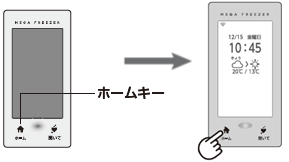 トップ画面が表示している状態で、ホームキーを押します。(ホーム画面を表示)