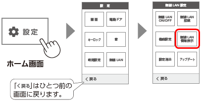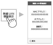 無線LAN設定画面の[無線LAN情報表示]にタッチすると、MACアドレスを表示します。