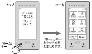 ドアを開閉するか、ホームキーをタッチして、トップ画面を表示させます。