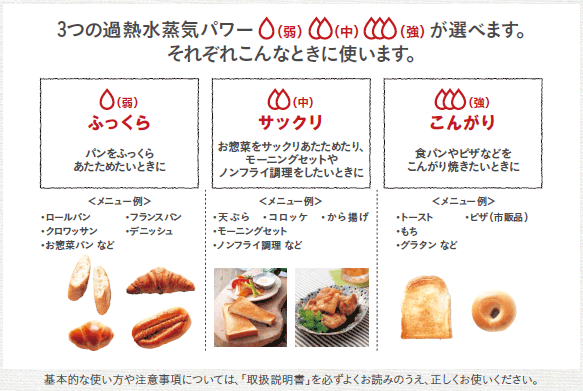 パンの加熱(あたため)やトーストも焼きたてのような美味しさを復元します。