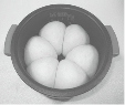 生地を少し上から押して平たくすると発酵しやすくなります。 |