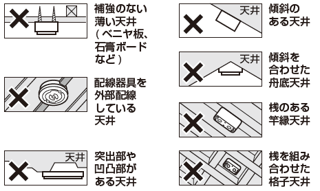 天井(配線器具)が以下のような場合は、本製品を取付できません。(落下・けがの原因)