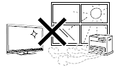 「直射日光」や暖房機器の「温風」などが直接当たる場所に設置されている場合は、テレビ本体内部の温度が上昇する場合があります。