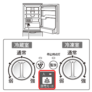 ※ 周囲温度35℃・温度調節「中」・新鮮冷凍「切」・食品を入れずにドアを閉じ、庫内温度が安定し、製氷が休止したとき。