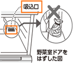 野菜室奥の吸込口がビニール袋などでふさがっている場合は、取り除いてください。