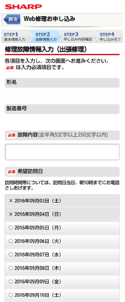 故障内容の入力と、ご希望の訪問日の登録をします。