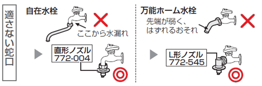 以下の蛇口に水栓つぎてを取り付けると水漏れする恐れがあります。