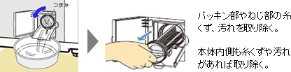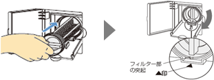 糸くずフィルターをお手入れ後、本体にしっかり取り付けてください。