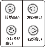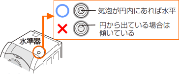 水準器の気泡が基準の円から外れていると、本体は傾いた状態です。