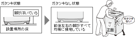 本体のがたつきが無くなる様、脚の高さを調整後、脱水をお試しください。