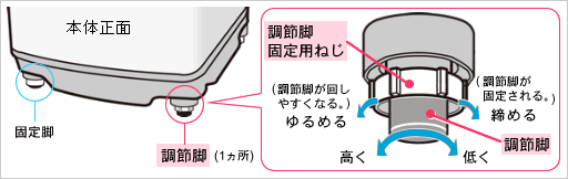 設置(水平)状態の確認と傾き調整のしかたは、こちら