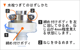 水栓つぎてのゴムパッキンに蛇口の跡がついてへこんでいたり、キズなどがある場合は、新しい水栓つぎてにお取り換えください。