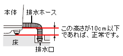 排水ホースを確認いただき、ホースの位置が床から高さ10cmを超えている箇所はありませんか?