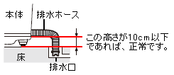 排水ホースを確認いただき、ホースの位置が床から高さ10cmを超えている箇所はありませんか?